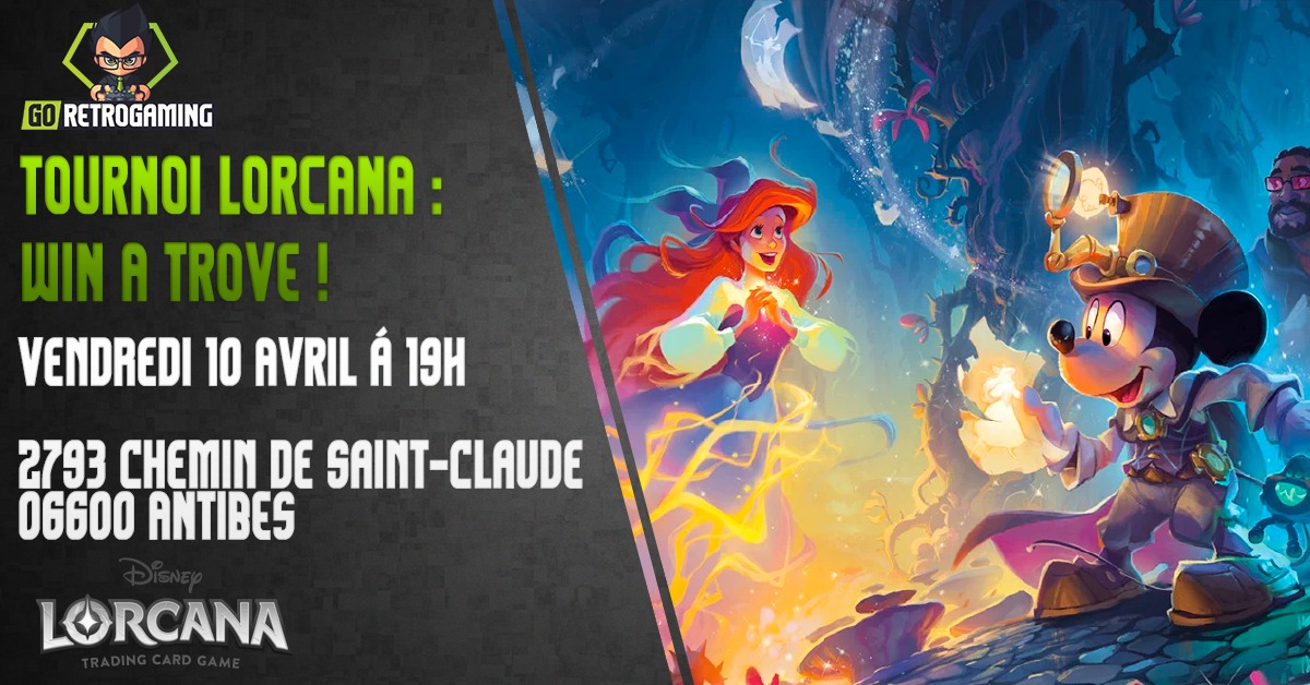 Rejoignez-nous pour un tournoi de Disney Lorcana le vendredi 10 Avril à 19h chez GoRetroGaming à Antibes.